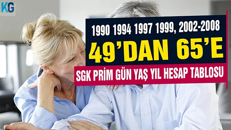 1990 1995 1997 1999 2008! 49'dan 65'e emeklilik yaş hesabı SGK 2022 mevzuatıyla sigorta prim gün tablosu