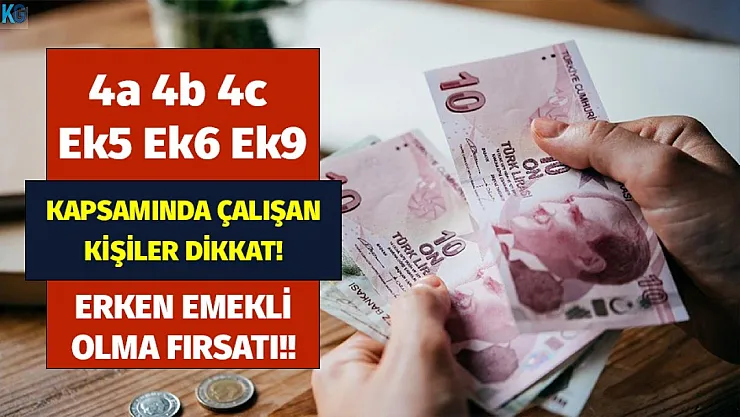 - 4a 4b 4c Ek5 Ek6 ve Ek9 kapsamında çalışan kişiler dikkat! Bu şartları sağlayan kişiler erken emekli oluyor