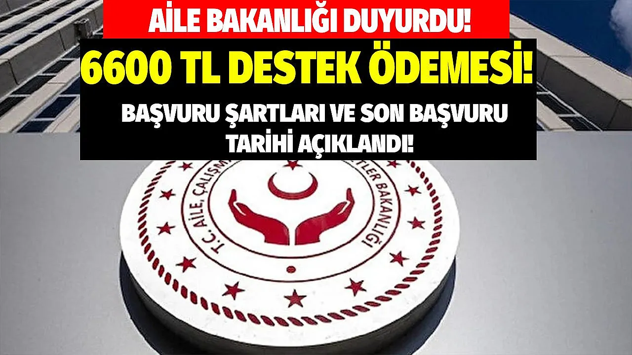 - Aile Bakanlığı tarafından 6600 TL destek ödemesi hesaplara yatırılıyor! İşte başvuru şartları ve son başvuru tarihi