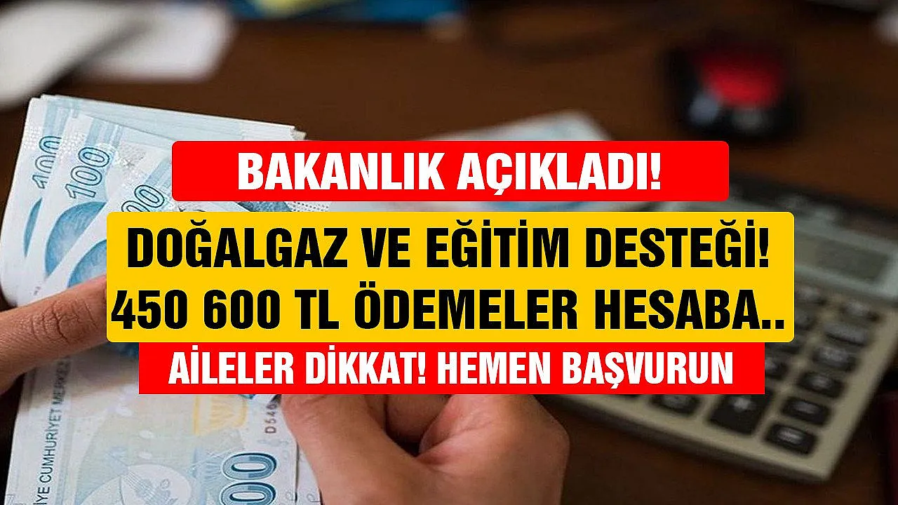 - Aile ve Sosyal Hizmetler Bakanlığı doğalgaz ve okul desteği verecek! Başvuranlara 450 600 TL ödemeler hesaplara yatırılacak!