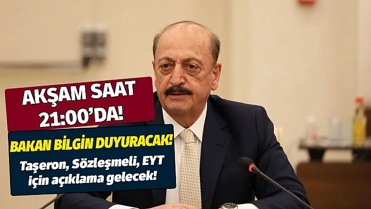 - Akşam saat 21.00'da bakan duyuracak! Taşeron, sözleşmeli ve EYT için açıklama gelecek