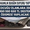Bakanlık bugün duyurdu! Çocuğu olanlara çocuk sayısı başına 350 450 550 650 TL ödeme yapılacak