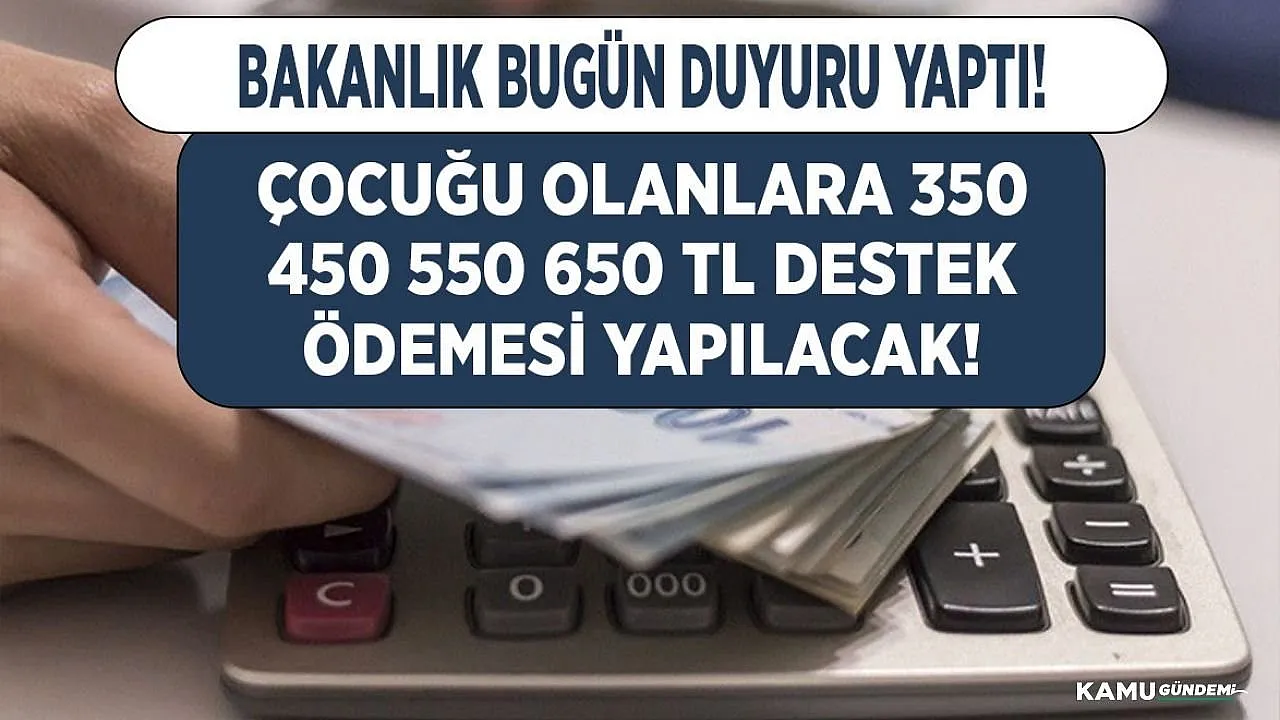 - Bakanlık bugün duyurdu! Çocuğu olanlara çocuk sayısı başına 350 450 550 650 TL ödeme yapılacak