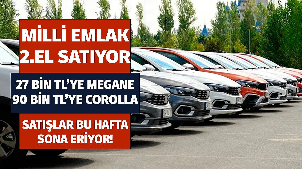 Bu hafta sona eriyor! Milli Emlak ikinci el otomobil satışları: 27 bin TL Megane 90 bin TL Corolla - Türkiye'de ikinci el otomobil fiyatlarında yaşanan artış sonrasında vatandaşlar devlet tarafından satışa çıkarılan ikinci el otomobilleri araştırıyor. Buna göre Türkiye'de ikinci el fiyatlarında enflasyonda yaşanılan artışlar sonrasında vatandaşlar kredi masraflarının altına girmeden uygun fiyatlı otomobil ilanlarını inceliyor. Buna göre ise artan ikinci el piyasası sonrasında devlet tarafından satışa çıkarılan ilanlara bakılıyor. İşte Milli Emlak tarafından paylaşılan 2. el otomobil satış ilanları..