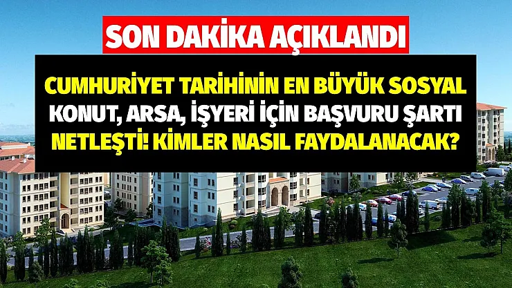 - Cumhuriyet tarihinin en büyük sosyal konut, arsa ve işyeri için başvuru şartları netleşti! Kimler nasıl faydalanacak hemen öğrenin