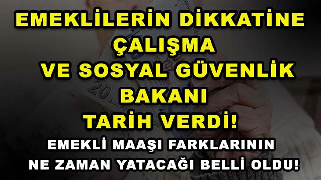 - Emeklilerin dikkatine Çalışma ve Sosyal Güvenlik Bakanı tarih verdi! Emekli maaşı farklarının ne zaman yatacağı belli oldu!