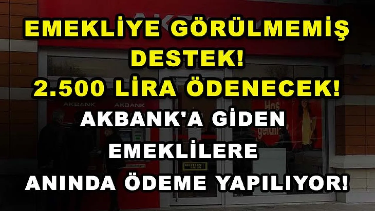 - Emekliye Görülmemiş Destek! 2.500 Lira Ödenecek! Akbank'a Giden Emeklilere Anında Ödeme Yapılıyor!