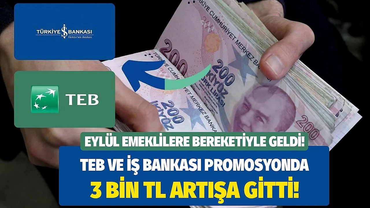 - Eylül bereketiyle geldi! Özel bankalar promosyon ödemelerini 3 bin TL birden arttırdı! Türkiye İş Bankası ve Türkiye Ekonomi Bankası'ndan rekor artış geldi