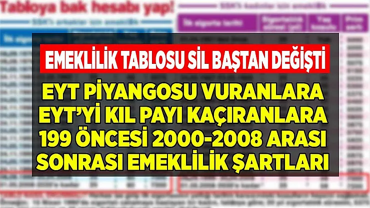 EYT piyangosu vuranlara 1999 öncesi EYT'yi kıl payı kaçıranlara 2000 2008 arası sonrası emeklilik tablosu sil baştan değişti