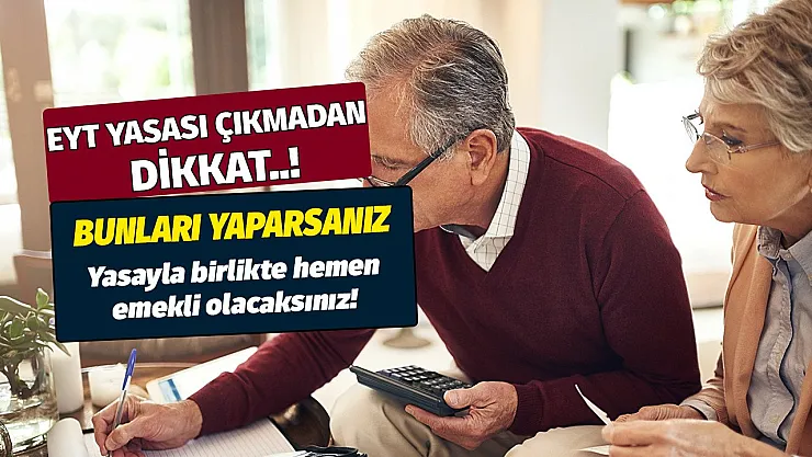 Türkiye'de milyonların gündeminde olan Emeklilikte Yaşa Takılanlar ile ilgili sıcak gelişmeler yaşanıyor. EYT'li bir kişi yasa çıkmadan önce ne yapmalı? Ünlü SGK uzmanı açıkladı eğer bunları yaparsanız hemen emekli olacaksınız