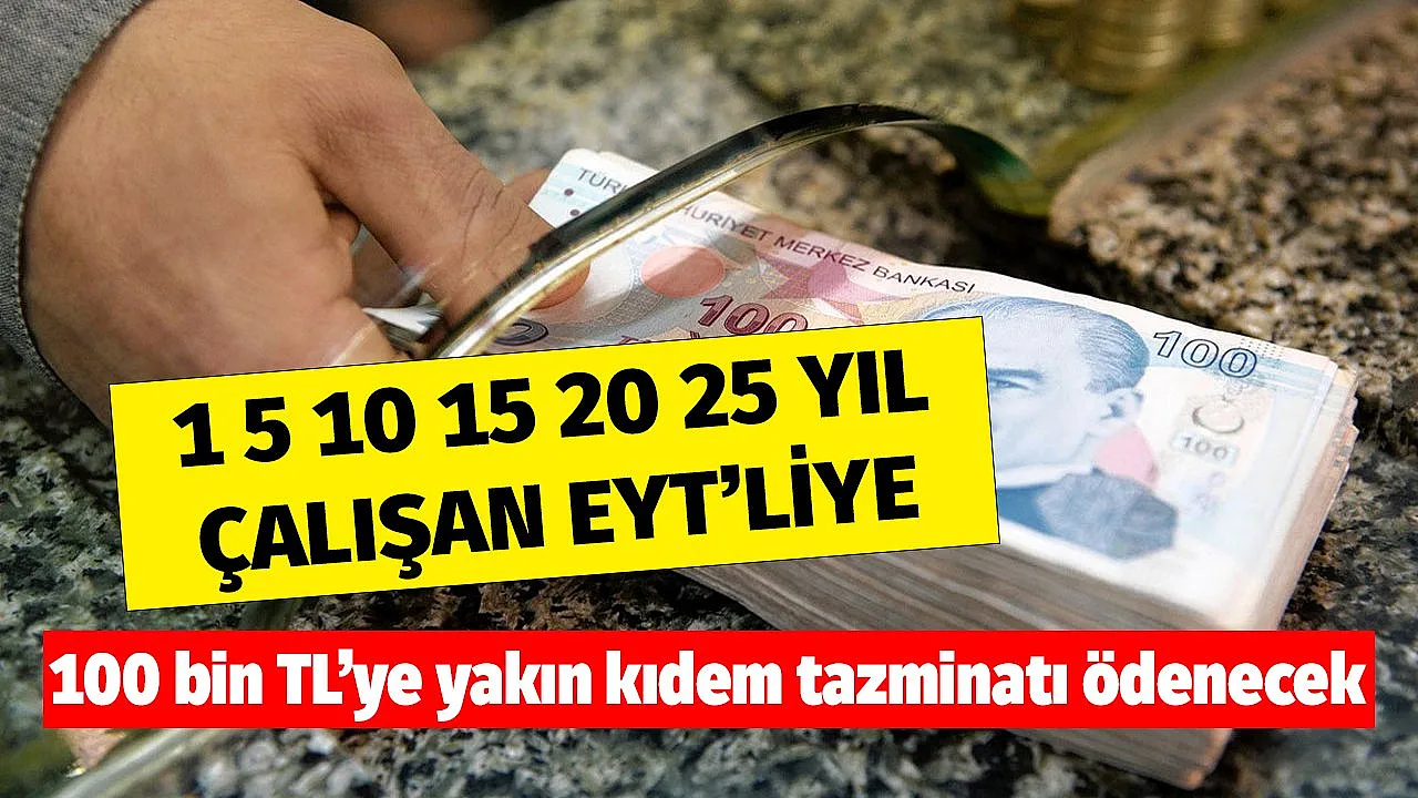 EYT'lilere hakları fazlasıyla geri verilecek! 1 5 10 15 20 25 yıl çalışan EYT'liye ödenecek tutar - Türkiye'de milyonların gözü kulağı EYT düzenlemesine çevrildi. Buna göre ise 6 milyon olduğu iddia edilen EYT'liler ile ilgili sıcak gelişmeler var. EYT'liler emekli olmak istediklerinde 100 bin TL'ye kadar toplu ödeme alabilecek.