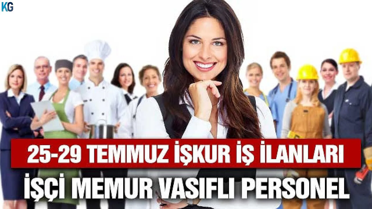 Türkiye İş Kurumu üzerinden çok sayıda duyuru 25 Temmuz ile 29 Temmuz tarihleri için yayımlanmış durumda. İşçi kadroları, vasıflı personel alımları hatta bazı kurumların memur alımları İŞKUR ile kamuoyuna aktarıldı.