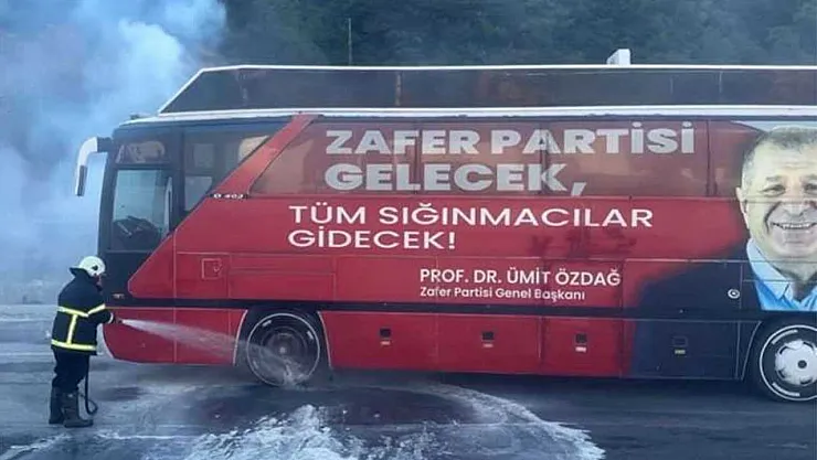 İnebolu'dan Ankara'ya yürüyüş başlatan Zafer Partisi Genel Başkanı Ümit Özdağ'ın il ziyaretleri ve seçim sürecinde kullandığı otobüste yangın çıktı.