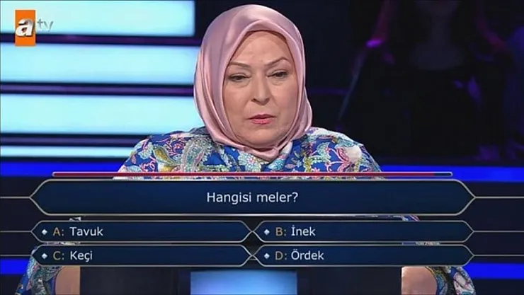 Yarışmacının joker kullandığı ilk soru ise "hangisi meler" sorusuydu. Soruya karşılık şıklar ise; tavuk, keçi, inek ve ördek şeklindeydi. Bu soruya joker hakkını kullanarak doğru yanıtı bulan yarışmacı ekranları başından izleyen pek çok kişiyi oldukça şaşırttı. Yarışma esnasında yaşanan bu dakikalar kısa süre içerisinde ise sosyal medyada da gündem oldu.