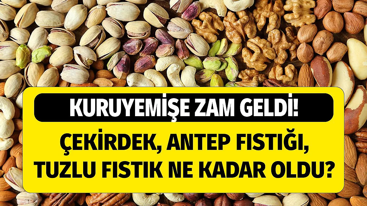 - Kuruyemişe zam geldi: Çekirdek, antep fıstığı, tuzlu fıstık, kuru üzüm ne kadar oldu?