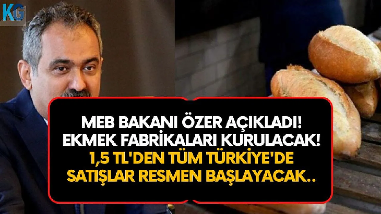 MEB açıkladı: Ekmek fabrikaları kurulacak! Ekmek fiyatları 1,5 TL olacak! Yeni yıl ile birlikte Türkiye'de ortalama 1,5 TL - 2 TL arasında satılan ekmek fiyatlarının güncel etiket fiyatı 4,5 TL oldu. Gelen bilgiler sonrasında ise vatandaşlar ekmek fiyatlarını eleştirirken Milli Eğitim Bakanı tarafından yapılan açıklama ile birlikte Türkiye'nin 81 ilinde ekmek fabrikaları kurulacağı açıklandı. Yapılan bu açıklamalar sonrasında ise ekmek fiyatlarına büyük bir güncelleme geleceği söyleniyor. İşte detaylar..