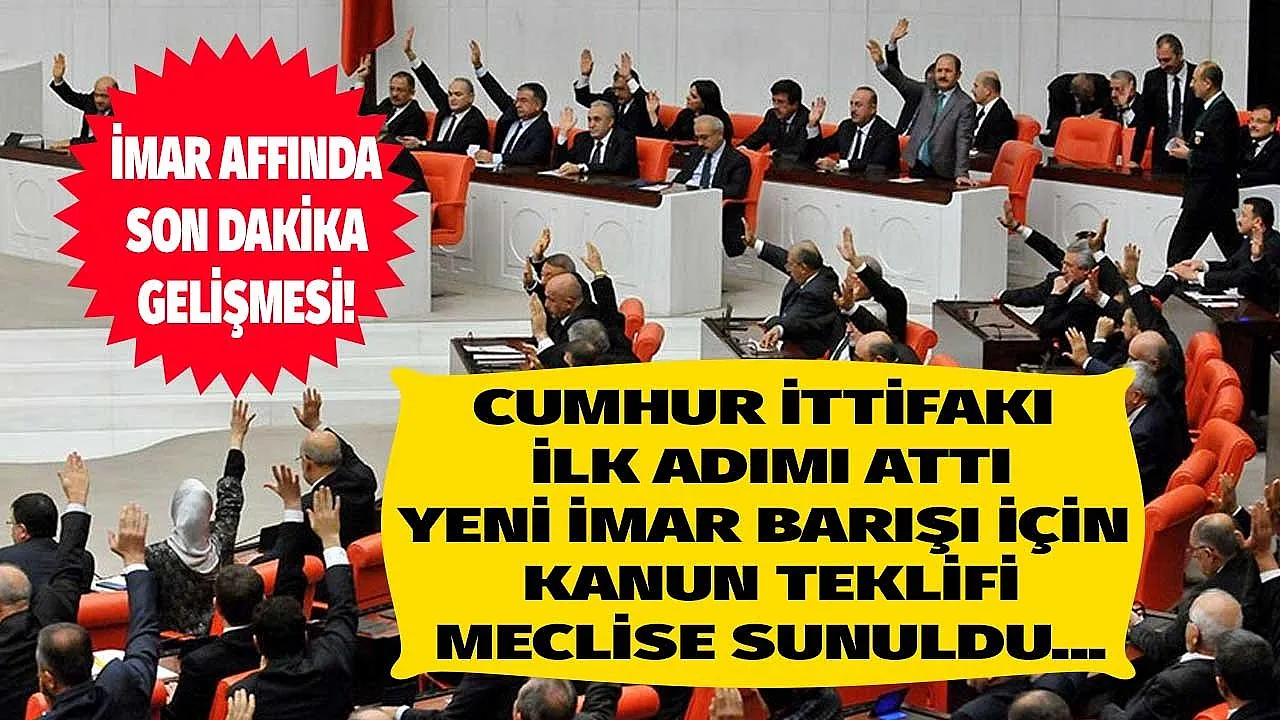 - Milyonlar bu müjdeyi bekliyordu Cumhur ittifakı ilk adımı attı! Yeni imar barışı yasa teklifi meclise sunuldu