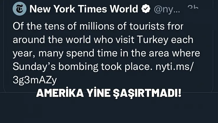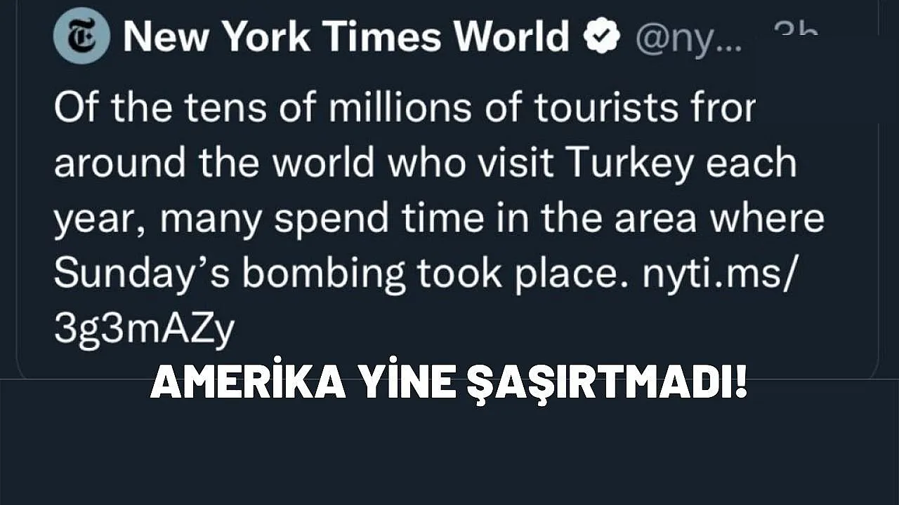 NYT, İstiklal Caddesin'deki patlamada, 'Türkiye'de turistlerin en çok uğradığı bölge olan İstiklal Caddesi, terör eyleminin hedefi oldu. Her yıl dünyanın dört bir tarafından Türkiye'yi ziyaret eden on milyonlarca turistin çoğu, pazar günkü bombalamanın gerçekleştiği bölgede vakit geçiriyor.' ifadelerini kullanarak dünya geneli manipüle operasyonlarını başlattı.