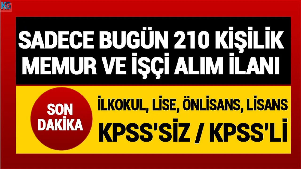 - Sadece bugün 210 kişilik memur ve işçi alım ilanı yayımlandı! KPSS'li KPSS'siz ilkokul lise önlisans lisans