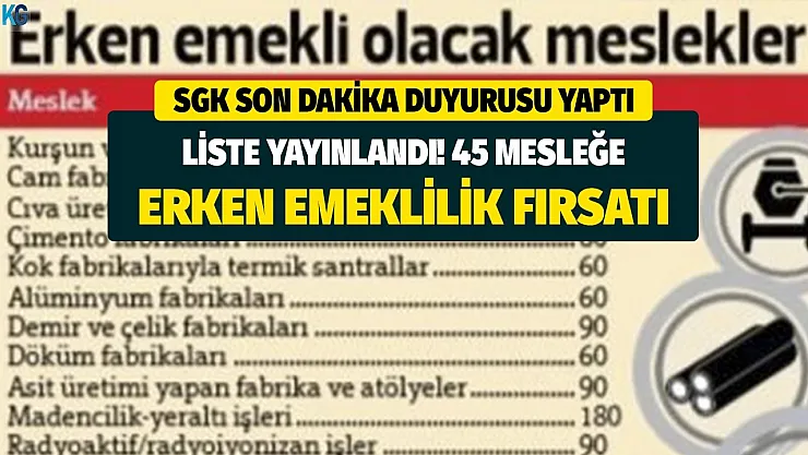 - SGK son dakika duyurusu yaptı! Liste yayınlandı: 45 mesleğe erken emeklilik fırsatı geldi