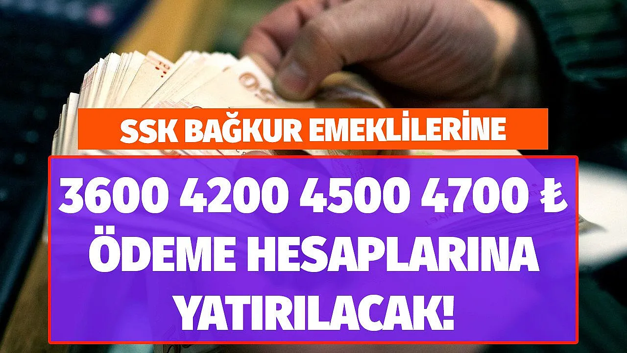 - SSK ve Bağkur emeklilerine bu ay sonuna kadar 3600 4200 4500 4700 TL ödeme yapılacak!