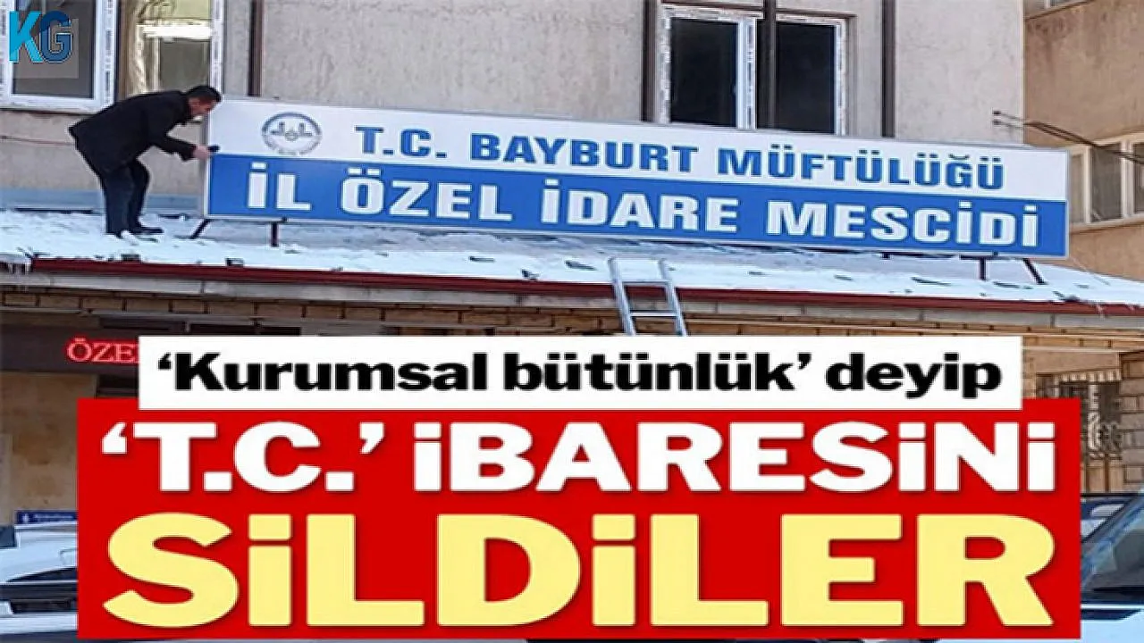 Bayburt İl Özel İdaresi'nin mescidinin tabelasında bulunan T.C ibaresi kaldırıldı. Müftü, tabelanın yeni standartlara göre düzenlendiği açıklamasında bulundu. Vatandaşın tepkisi gecikmedi.