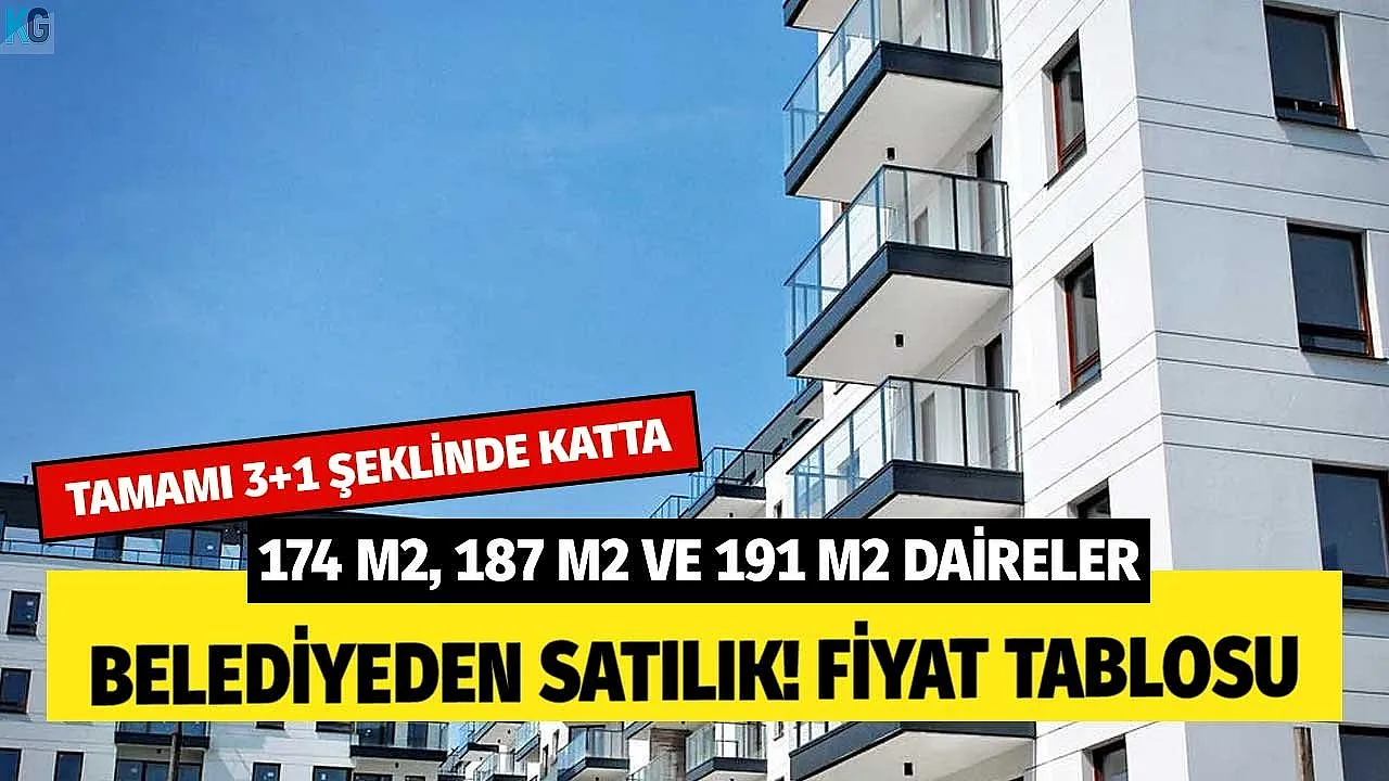 Tümü 3+1 katta 174 m2, 187 m2, 191 m2 daireler belediyeden satılık! Fiyat tablosuyla