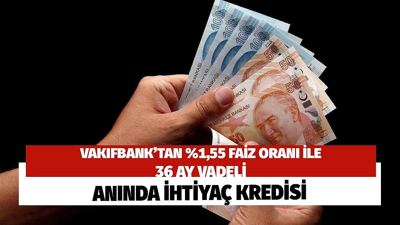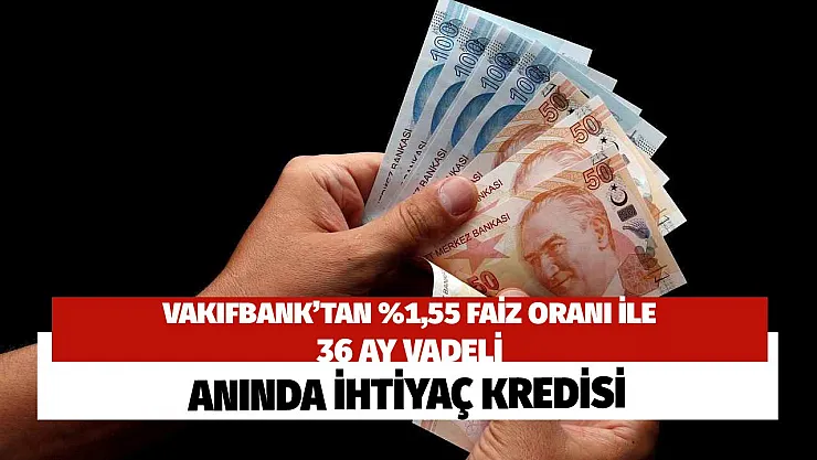 Vakıfbank'tan yüzde 1,55 faiz oranı ile 36 ay vadeli anında 10 bin lira ihtiyaç kredisi